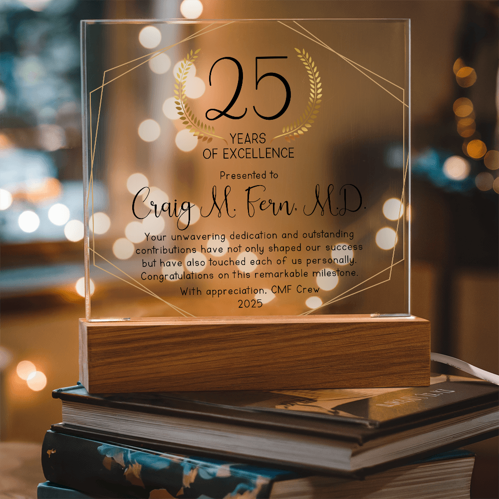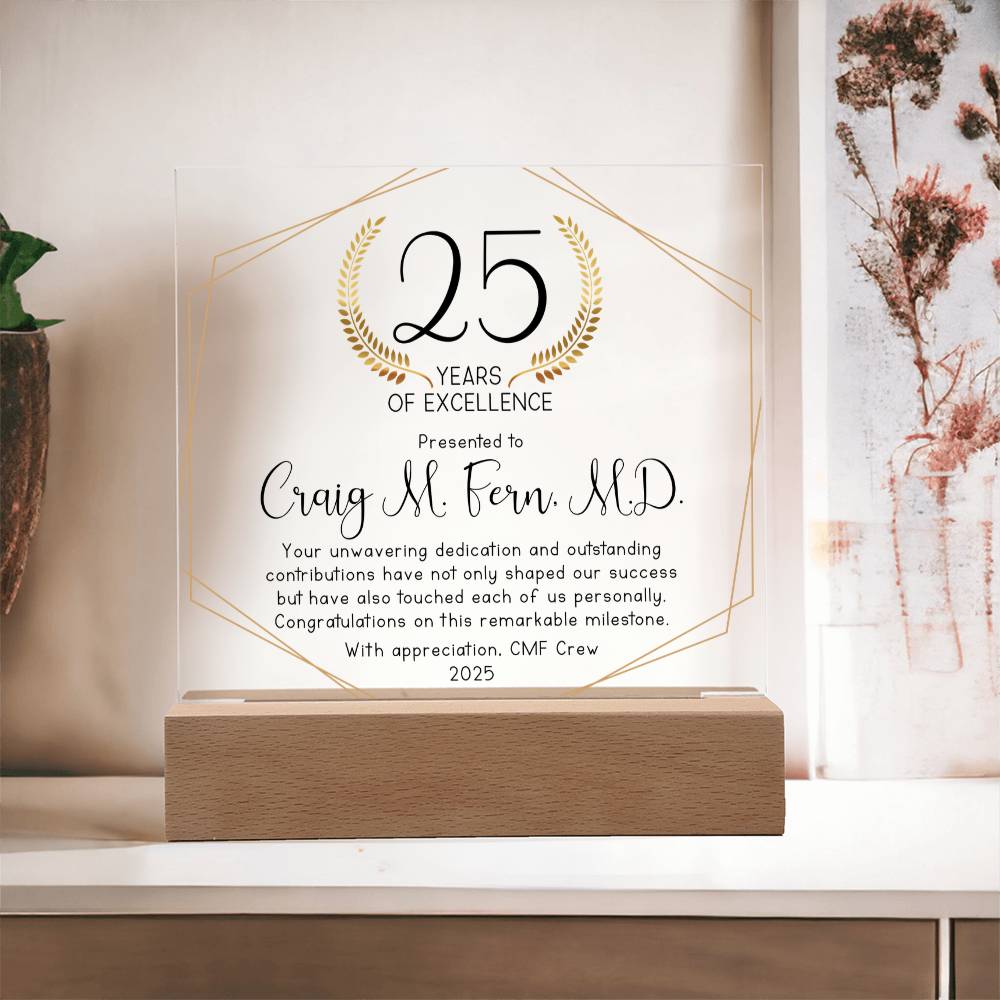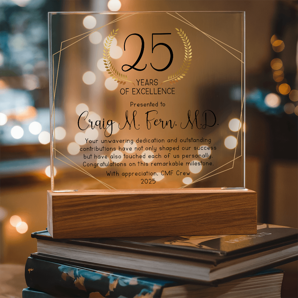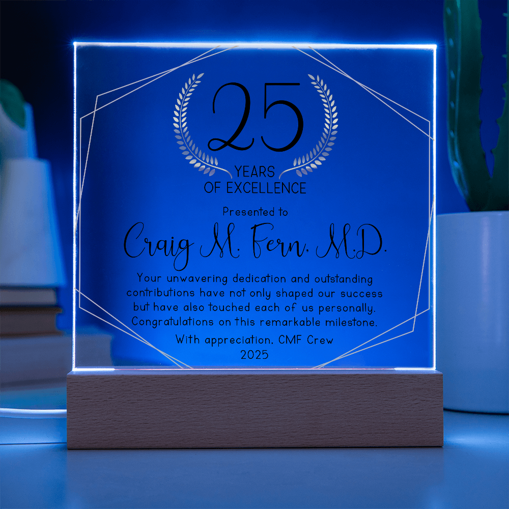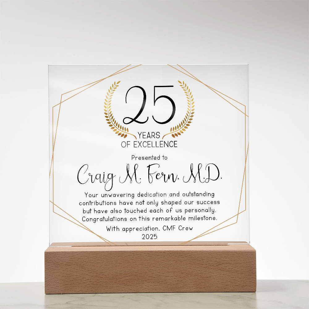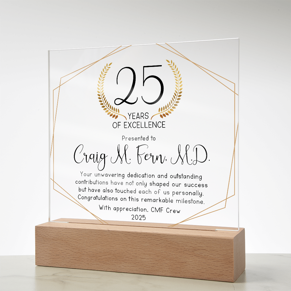 Your plaque will be crafted from premium acrylic with a professionally printed design for a polished look. It comes with a stylish wooden LED base, and you can choose between a USB plug-in option OR a cordless battery-operated option (requires 2 AAA batteries, not included). Both LED bases feature 7 vibrant colors, allowing the user to customize the lighting with various color changes and dynamic cycles.