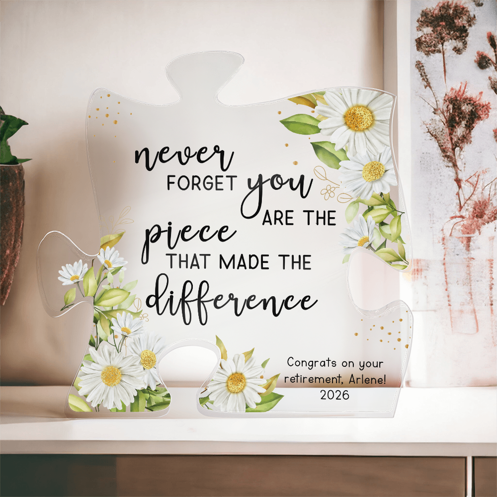 Knowing what gift to buy your loved one doesn't have to be a puzzle. Our Printed Acrylic Puzzle Plaque is the perfect present if you're looking for an unique and heartfelt experience. Made from premium quality acrylic, the crystal-clear finish catches the light and leaves a dazzling impression. The vibrant printed design creates a wonderful gift giving experience that will leave your special someone speechless! This is the ideal gift for your beloved partner, family member, or dear friend on special occasions such as a birthday, graduation, or anniversary. Let them know how much they mean to you by purchasing today!