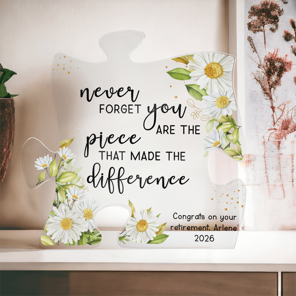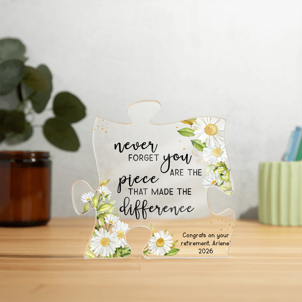 Knowing what gift to buy your loved one doesn't have to be a puzzle. Our Printed Acrylic Puzzle Plaque is the perfect present if you're looking for an unique and heartfelt experience. Made from premium quality acrylic, the crystal-clear finish catches the light and leaves a dazzling impression. The vibrant printed design creates a wonderful gift giving experience that will leave your special someone speechless! This is the ideal gift for your beloved partner, family member, or dear friend on special occasions such as a birthday, graduation, or anniversary. Let them know how much they mean to you by purchasing today!
